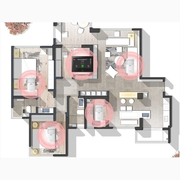 När rörelse upptäcks skickas händelsen direkt via SecureX-hubben och du får pushnotiser i realtid i L'application Stonehouse Smart (iOS/Android). Kompatibilitet med Tuya et Smart Life sker via hubben.