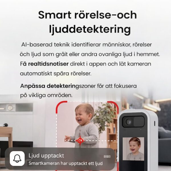 Den passar perfekt som babyvakt, husdjurskamera eller extra trygghet i hemmet och på kontoret. Tack vare inbyggd 2.8 tums skärm och videosamtal kan du snabbt få kontakt med familjen direkt via kameran, samtidigt som du har full kontroll i mobilen.