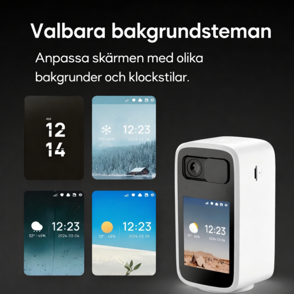 Den inbyggda skärmen gör kameran extra praktisk i vardagen. Du kan använda videosamtal för att prata med barn, äldre anhöriga eller andra i hemmet.