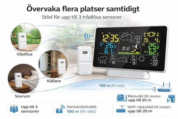 Perfekt för hobbyväxthus, sommarstugan eller bara för att ha full koll på klimatet och kommande väder.